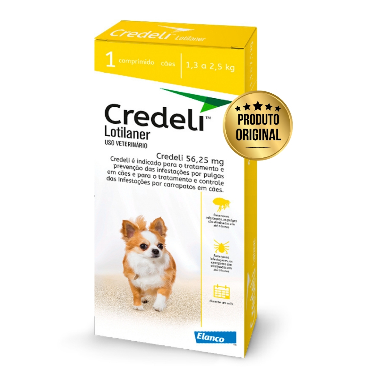 Credeli Elanco 56 mg Antipulgas e Carrapatos para Cães 1,3 kg a 2,5 kg