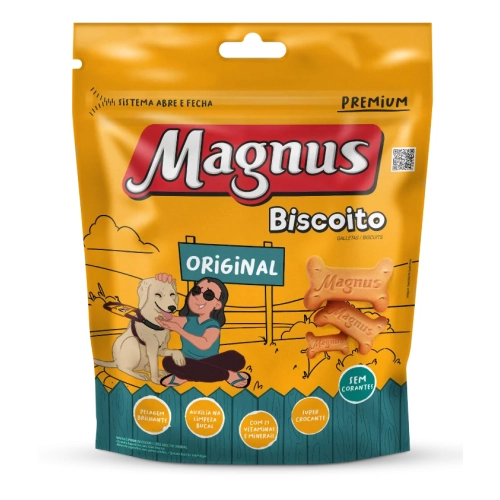 O Biscoito Magnus Original é um petisco especialmente desenvolvido para cães de todos os portes, elaborado com ingredientes criteriosamente selecionados que proporcionam um sabor inigualável. Além de ser uma deliciosa demonstração de carinho, este biscoito também auxilia na saúde bucal do seu pet.
